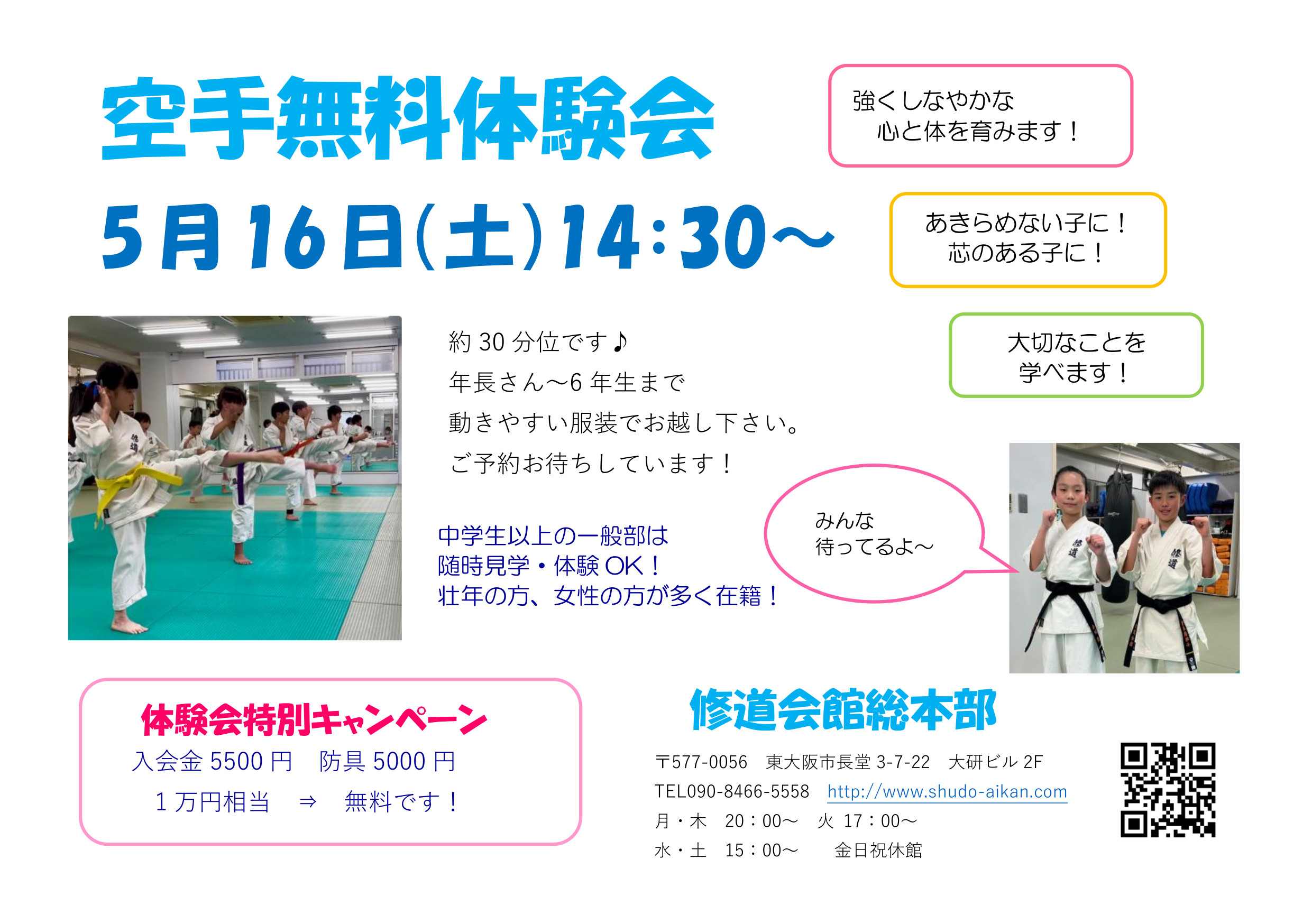 修道会館は、空手を通して 青少年育成 並びに 社会に貢献できる人材の育成を目指しています。